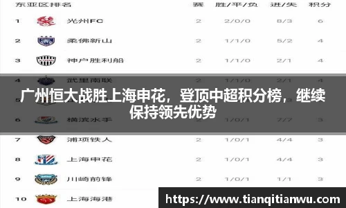 广州恒大战胜上海申花,登顶中超积分榜,继续保持领先优势